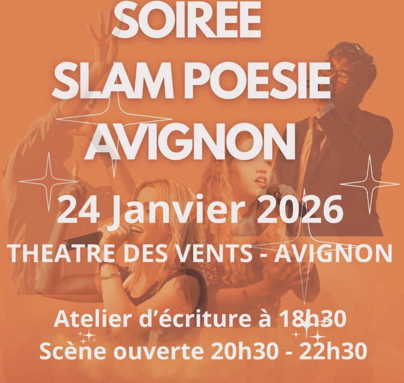Des scènes slam & poésie se relancent à Avignon, la première a lieu ce soir à 20h30 au théâtre des vents (63 rue Guillaume Puy – PAF 10 euros), je lirai des extraits de Solo aux éditions Tarmac. Pour la seconde, trois prochaines dates sont fixées au théâtre de l’Isle (18 place des Trois pilats – prix libre), j’y serai le 8 février. Je vous donne rendez-vous pour ces deux prochaines lectures, avant d’autres probablement à Avignon, Dieulefit (en Drôme) et Marseille. A bientôt !