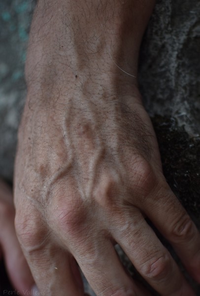 Rêche ridée grevée de taches comme grêlée boursouflée la peau plisse sur le dessus de la main parcheminée on pourrait lire l’âge et l’histoire dans les sillons celle d’une terre retournée à mains nues on pourrait compter les années de labeur dans ses doigts gourds tordus grinçants aux ongles noircis ayant crocheté tout l’été par habitude phalanges jouant des coudes pour déjouer la vieillesse qui déjà et depuis longtemps s’incruste jusqu’au préhenseur qui peine à prendre ses désirs pour des réalités non consumées d’arthrose jusqu’à l’auriculaire menacé de surdité la main craque de tous ses os