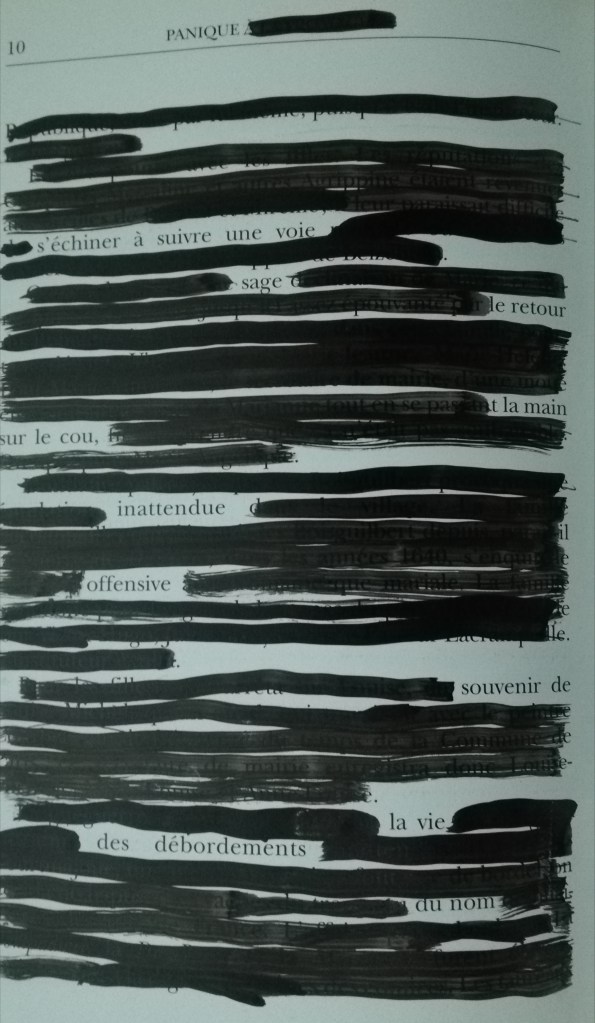 NB Panique sera le titre de cette longue série de caviardages, tirée d’un livre complet et unique.