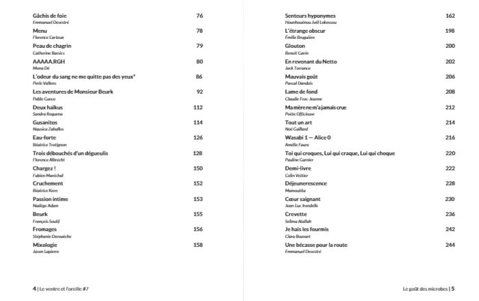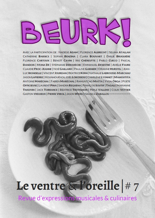 La revue Le Ventre et l’Oreille est une revue culturelle d’expressions musicales et culinaires. Elle réunit des articles au fil de l’eau et des numéros thématiques. Le dernier thème en date est « Beurk » et traite de dégoût gustatif, olfactif, visuel, concernant ce qui se cuisine et se mange, ou auditif s’agissant de sons, de musique…