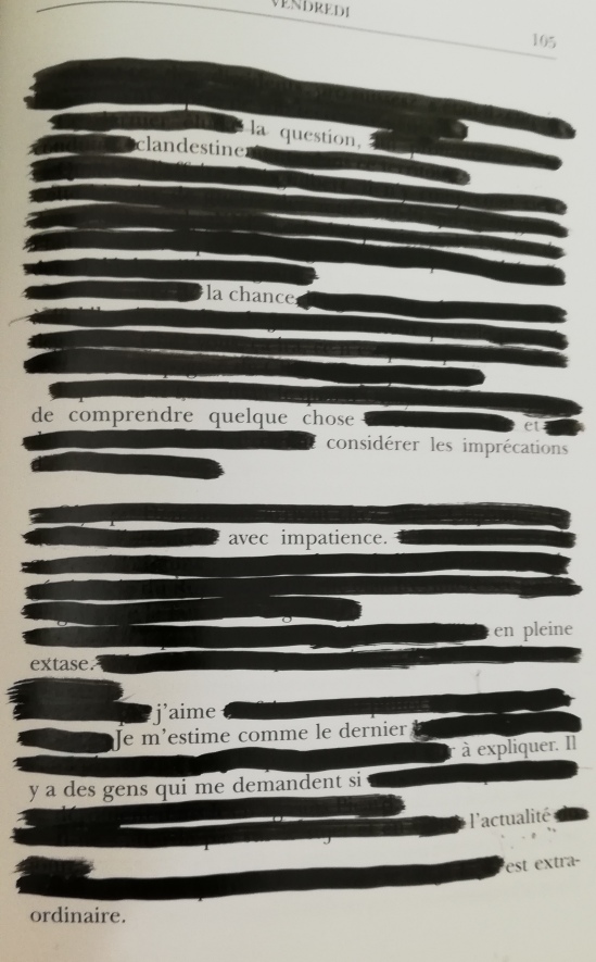 Elle dévie son regard sur les dunes. C’est un regard fait d’errances dans lequel passe parfois un éclat vif, une zébrure : un souvenir. Un coup de vent fait plisser la paupière. Une ombre se glisse sur le cou, la vague bleue de l’artère pulse, régulière. Au coin de la bouche, un résidu mousseux. La voix, toujours monocorde, ainsi que le doigt, désignent ensemble l’horizon.