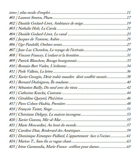 Atlas roman puissance 100 est un livre édité par François Bon du Tiers Livre, cent courtes fictions écrites en suivant une consigne d’écriture proposée par l’éditeur et animateur d’ateliers, en hommage collectif à l’Atlas des Régions Naturelles d’Eric Tabuchi et Nelly Monnier.