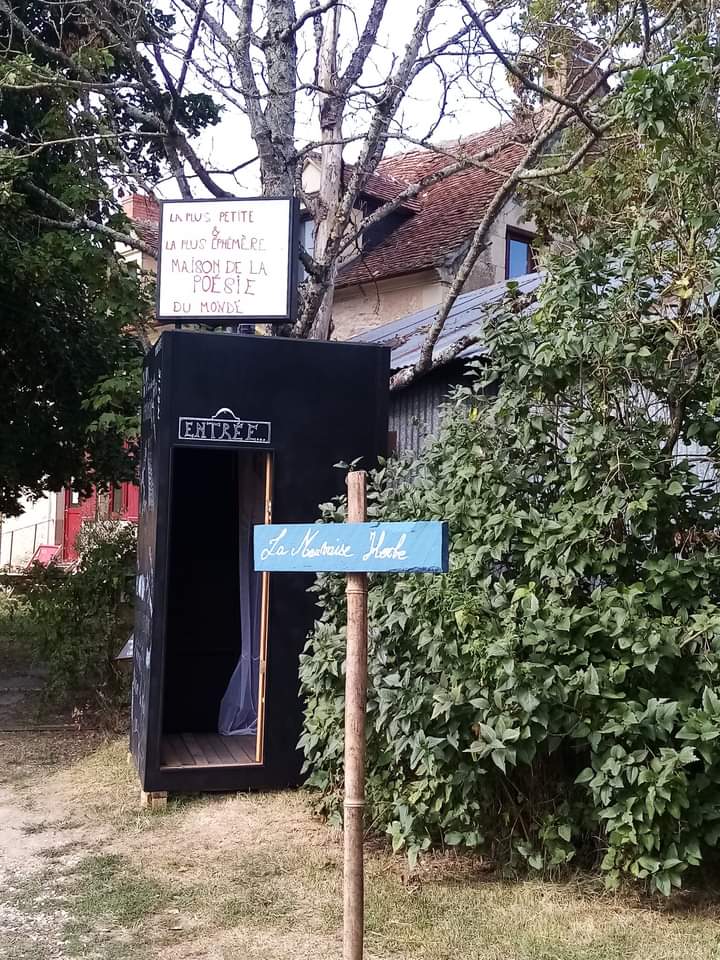 Le festival est terminé mais les expositions restent en place à Charly (Cher) jusqu’au 10 septembre : poèmes graphiques/photo-poèmes en extérieur, vidéo-poèmes dans la « plus petite maison de la poésie » en partenariat avec la Péninsule/Maison de poésie en Cotentin, créée par Adeline Miermont-Giustinati que je remercie pour les photos ci-dessus.