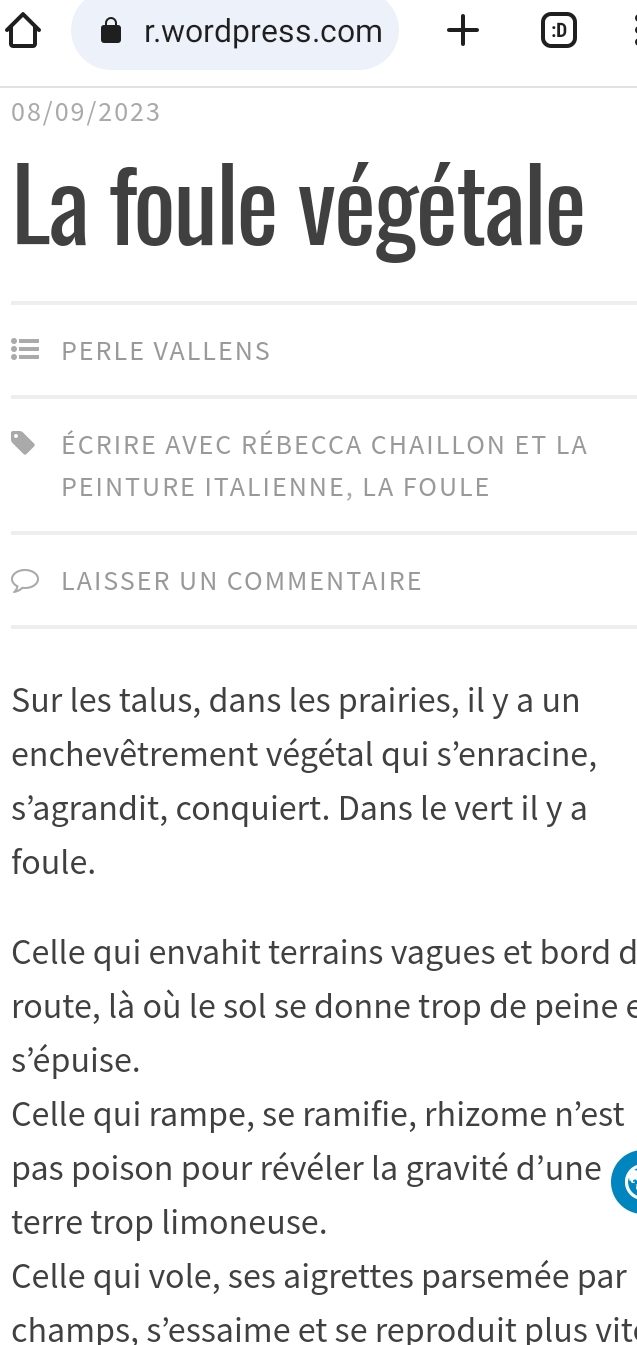 La foule végétale est un texte écrit d’après consigne d’écriture proposée par Laura Vazquez. Il paraît dans le dernier numéro de la revue Miroir.
