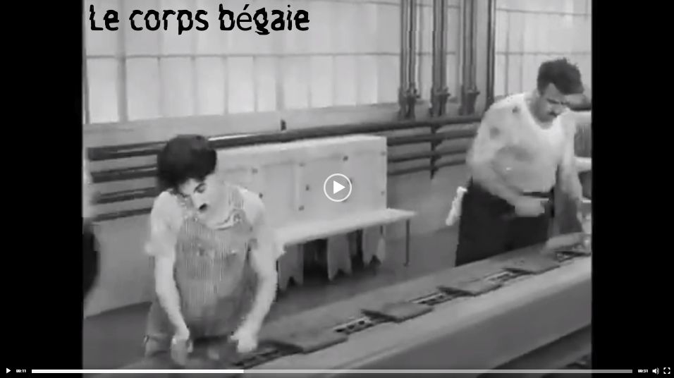 Après ce chant de caresse, voici Trébucher, une nouvelle création sonore et visuelle pour le site l’aiR Nu/rubrique c’est entendu, un vidéo-poème, et même un ciné-poème puisqu’imagé par un extrait des Temps modernes de Charlie Chaplin sur les sons 39, 49, 65 de la sonothèque du site. c’est très court, ça dure 30 sec et c’est à voir en suivant le lien de l’aiR Nu.