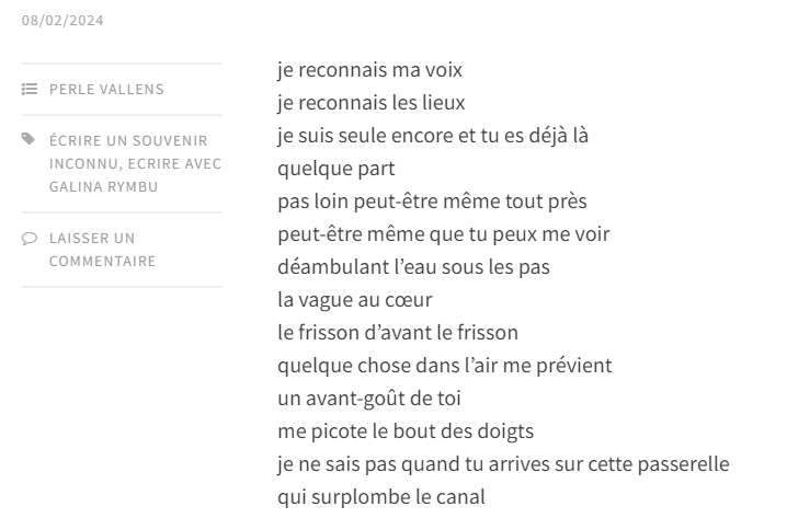 Un poème-souvenir, un souvenir en forme de poème, c’est dans le dernière parution de la revue Miroir, un texte issu des ateliers d’écriture de Laura Vazquez. Ci-dessus le début, le reste à lire ici.