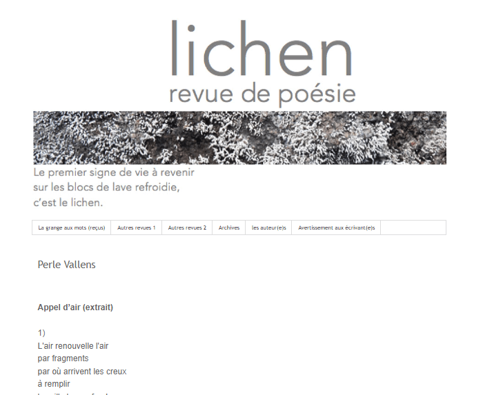 Extrait d’un mini recueil intitulé Appel d’air, deux poèmes à lire dans la revue en ligne Lichen.