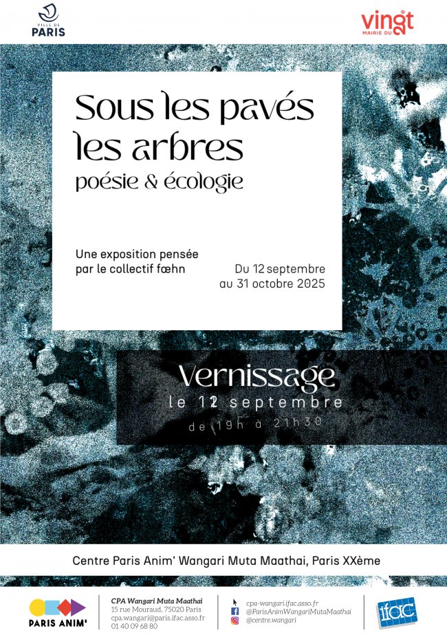 Exposition d’un poème dans le cadre de l’exposition collective initiée par le collectif de la revue foehn, installation de textes et oeuvres graphiques du 12 septembre au 31 octobre 2025 au centre Wangari (Paris). Lectures de certains textes lors du vernissage le 12 septrembre (auquel je ne peux participer)
