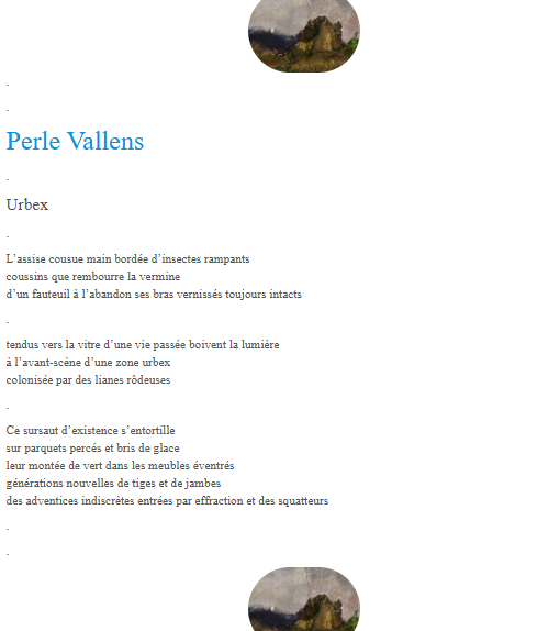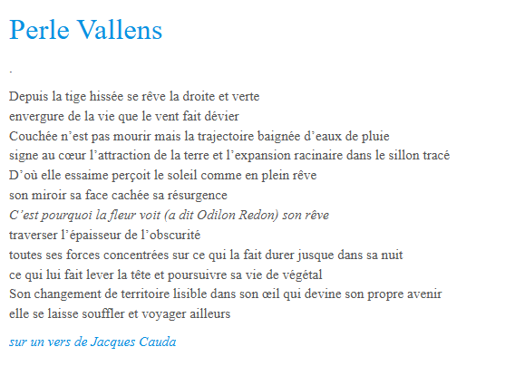 Présente dans la nouvelle anthologie de l’association Embarquement poétique, dirigée par Maryline Bertoncini, sur le thème/titre Du corps du poète au corps poétique, que l’on peut acquérir ici.
