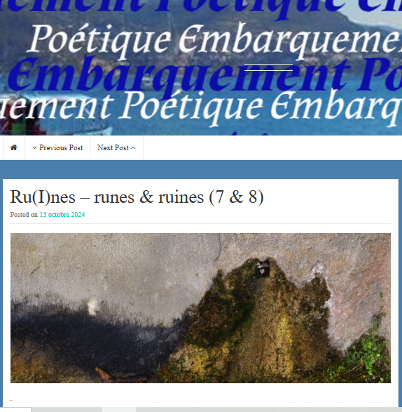 L’anthologie Runes & ruines dirigée par Marilyne Bertoncini de l’association Embarquement poétique est paru. On y trouve parmi de nombreux poèmes sur cette thématique élargie : Urbex.