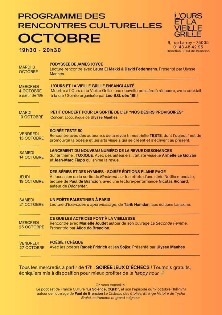 Je vous dis à samedi 19h30 pour une lecture de toxicatio, à L’Ours et la vieille grille à Paris.