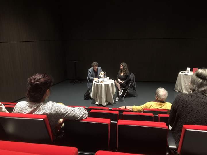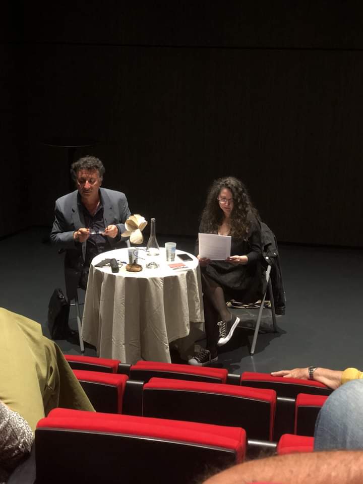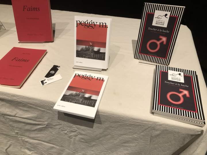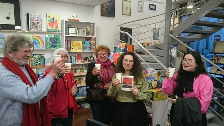 A la librairie l’Orange bleue, fin de soirée après la présentation et la lecture d’extraits de peggy m. aux éditions La place