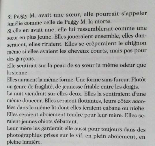 Elle aurait pu faire quelque chose de sa vie. Elle aurait pu être quelqu’un, une personne importante. Elle aurait pu avoir une vraie carrière. Au lieu de ça, elle est devenue mère. Voilà aussi ce qu’il se disent. La sœur est chef d’entreprise, la cousine est professeur d’université, alors forcément, elle, dans sa bourgade du sud, dénote, détonne et explosive contrefaçon des possibilités d’expansion, des avènements féministes. Quelle sens des priorités ! Elle serait désespérante si l’on avait pas autant pitié.