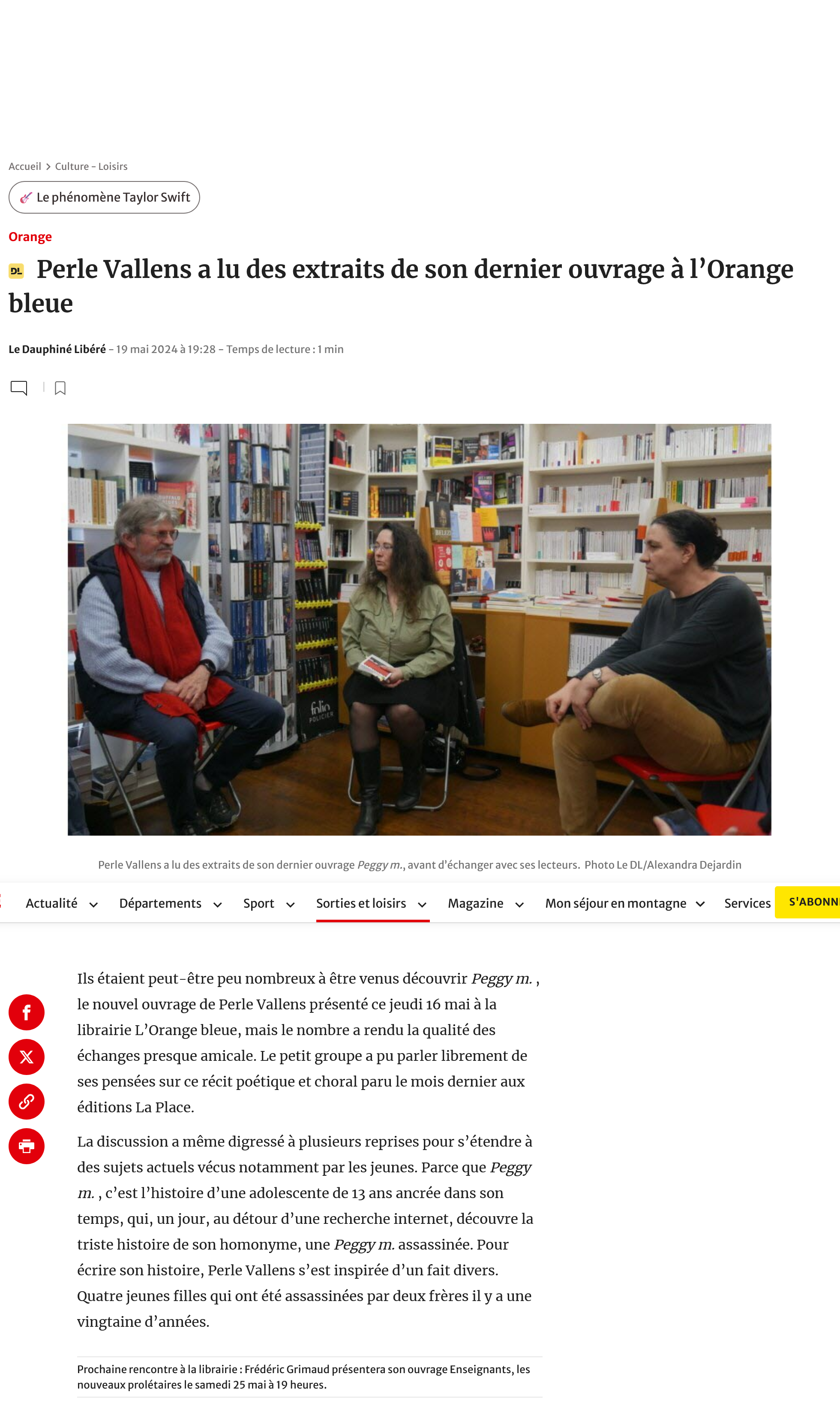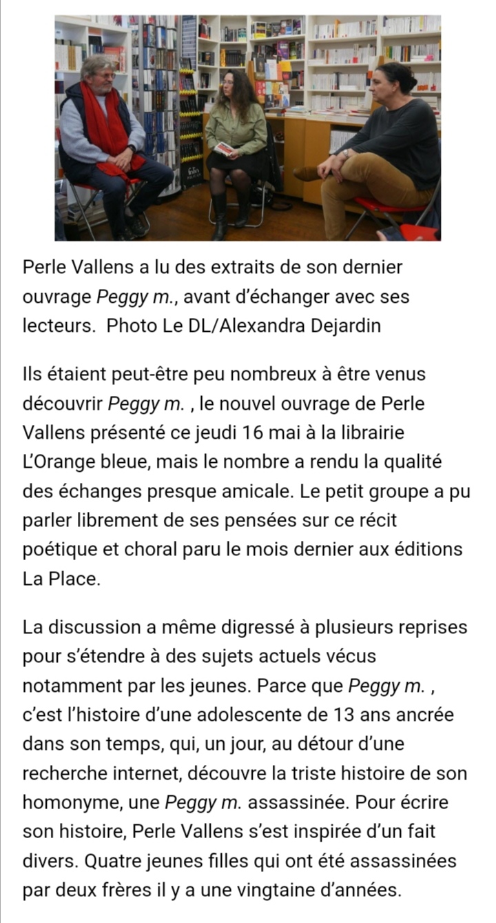 Récupéré il y a peu, le Dauphiné Libéré du 19 mai (édition en ligne) suite à la lecture donnée de peggy m. à la librairie Orange Bleue, le jeudi 16 mai.