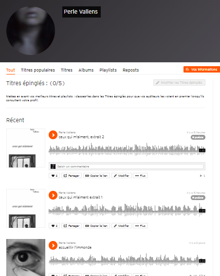 Une autre façon de découvrir le recueil ceux qui m’aiment est d’en écouter des extraits sur soundcloud.