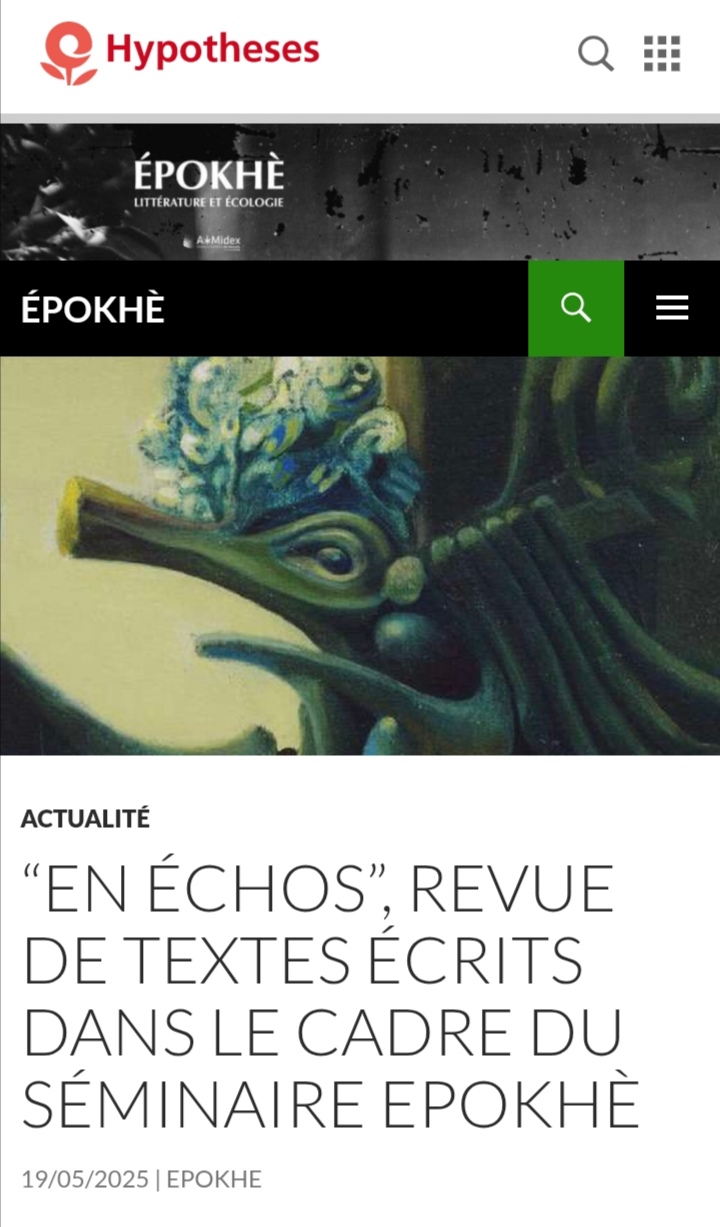 Dont recueil collectif en ligne avec le Master de création littéraire écopoétique d’Aix-Marseille. Plus de détail sur la rubrique « anthologie ».